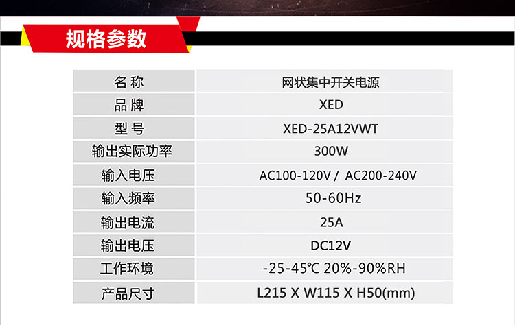 XED-25A12VWT網(wǎng)狀集中開關(guān)電源,寬電壓AC100-240V輸入。