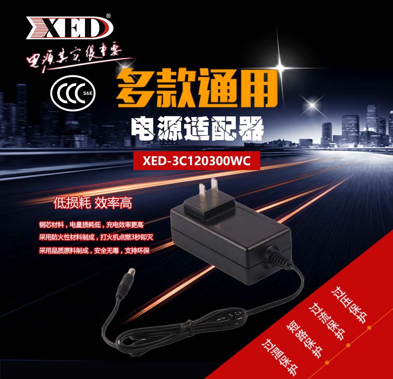 XED-BS120300WC插墻式電源適配器,12V英規(guī)直插式電源,過6級能效,通過多國認(rèn)證。