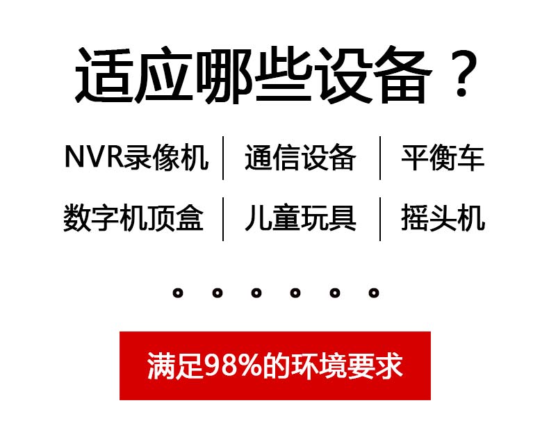 可適用范圍監(jiān)控安防、軍工設(shè)備、科研設(shè)備、LED照明、工控設(shè)備、通訊設(shè)備、電力設(shè)備、儀器儀表、工業(yè)自動化控制、數(shù)碼產(chǎn)品、路由器、網(wǎng)絡(luò)交換機(jī)、視聽產(chǎn)品和儀器等。
