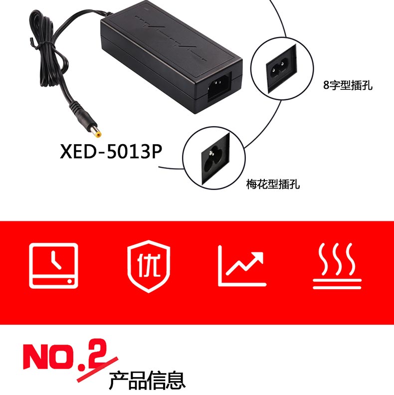 XED-2524SDC雙線電源適配器,60W桌面式電源適配器。