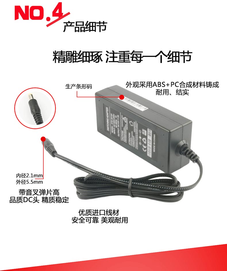 XED-2024P品字尾電源適配器,48W桌面式電源適配器。