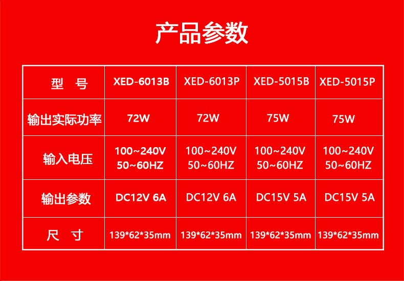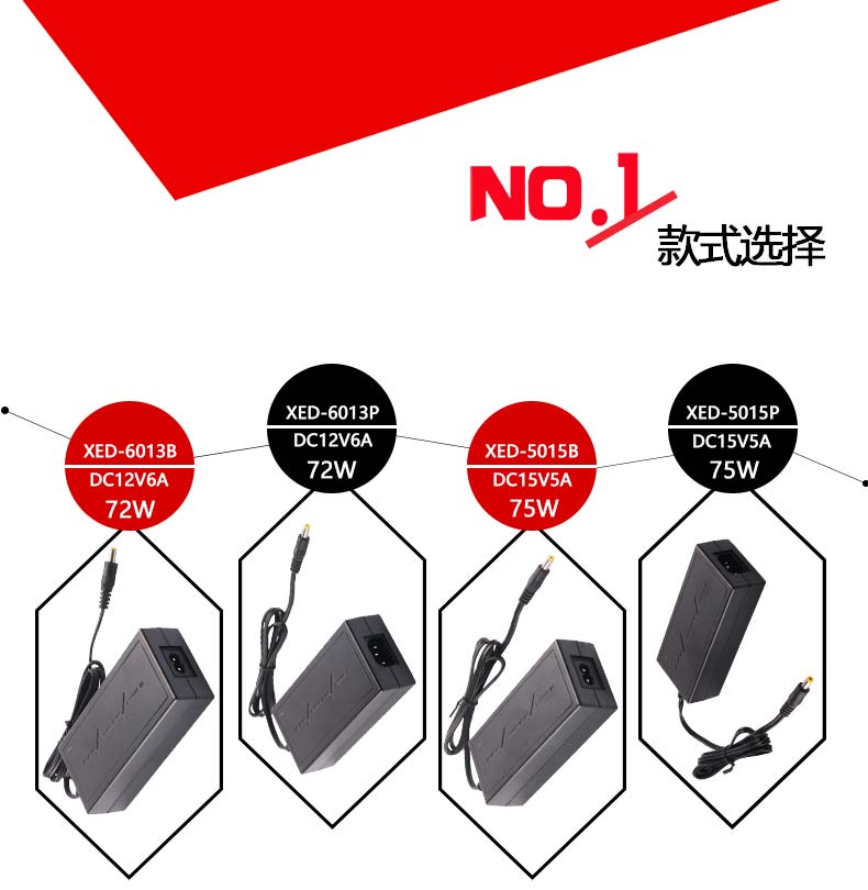 XED-5015B八字尾電源適配器,75W桌面式電源適配器。