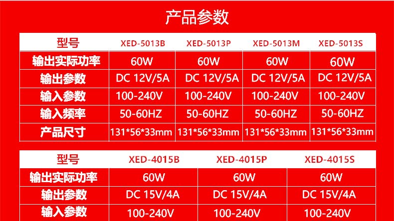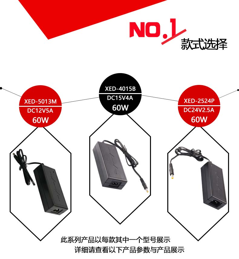 XED-5013B八字尾電源適配器,60W桌面式電源適配器。