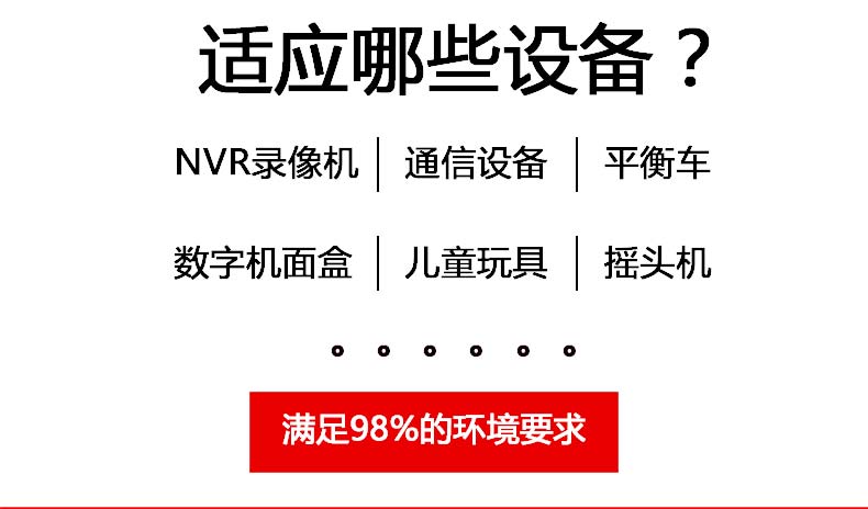 可適用范圍監(jiān)控安防、科研設(shè)備、LED照明、工控設(shè)備、通訊設(shè)備、電力設(shè)備、儀器儀表、工業(yè)自動化控制、數(shù)碼產(chǎn)品、網(wǎng)絡(luò)交換機(jī)、視聽產(chǎn)品和儀器等。
