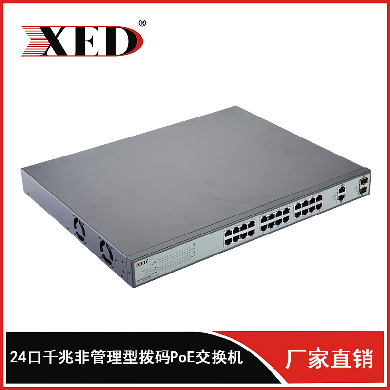 24個10/100M自適應(yīng)RJ45電口,4個千兆UPLINK端口、4個SFP端口;千兆非管理型交換機(jī)。
