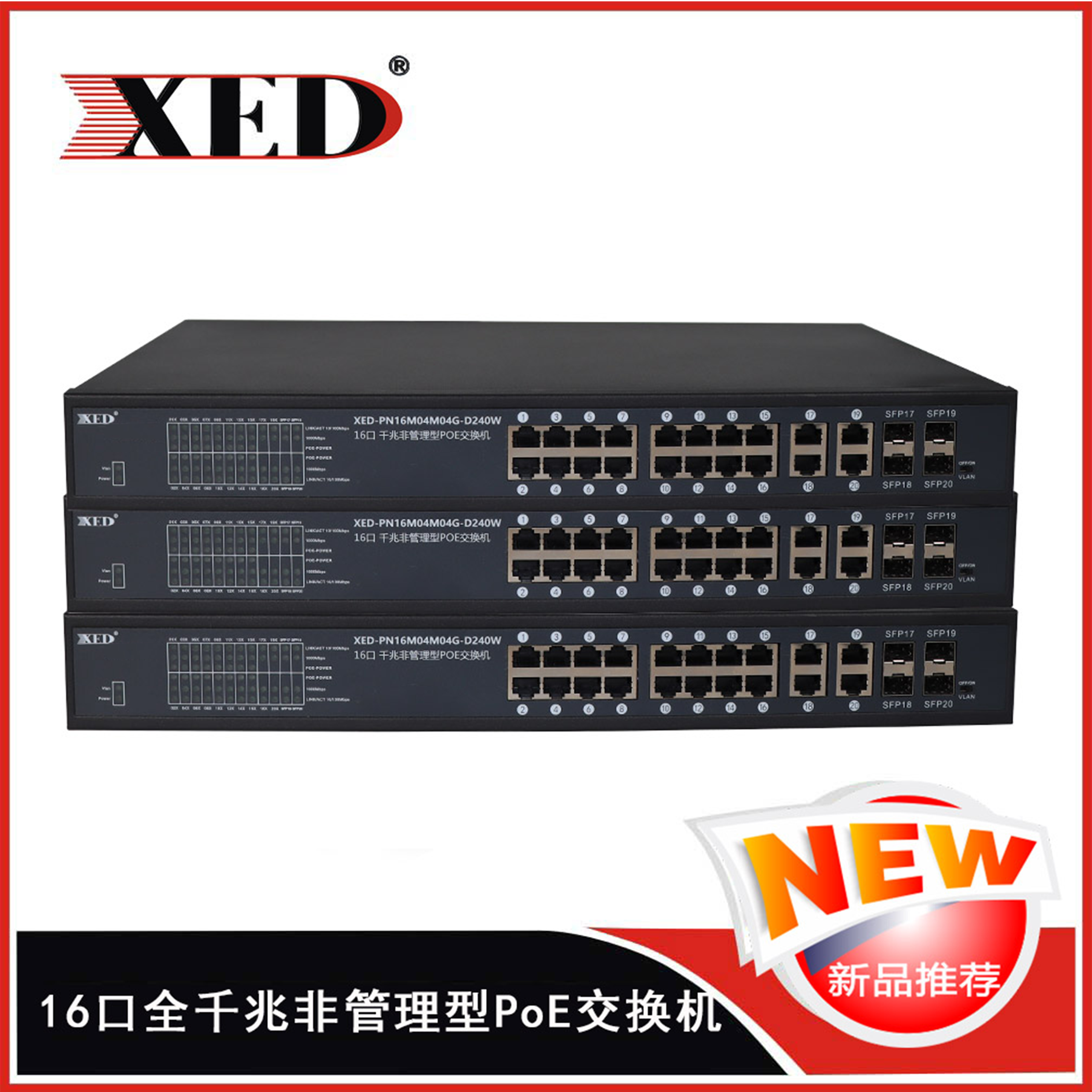 16個(gè)10/100M自適應(yīng)RJ45電口,4個(gè)1000M上聯(lián)口和1個(gè)千兆SFP光纖模塊插槽;千兆非管理型交換機(jī)。