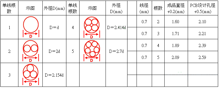 3、為了避免組裝困難以及過爐空焊等問題,變壓器在飛線時PCB孔徑要預(yù)留最大飛線直徑,也可預(yù)留一大一小PCB孔,安規(guī)認(rèn)證中,低壓大電流、高壓低電流飛線直徑是不一樣的,下圖為參考